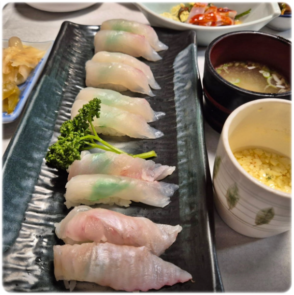 한마디로 초밥 주문 하나로 한정식 같은 한상 차림을 받는 느낌입니다. 군산 유정초밥은 서울의 초밥집처럼 초밥만 딱 나오는 게 아니라, 정성스러운 밑반찬이 함께 나와 더 푸짐하고 만족스러운 식사가 됩니다.