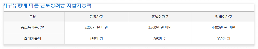 - 홑벌이 가구: 최대 285만 원